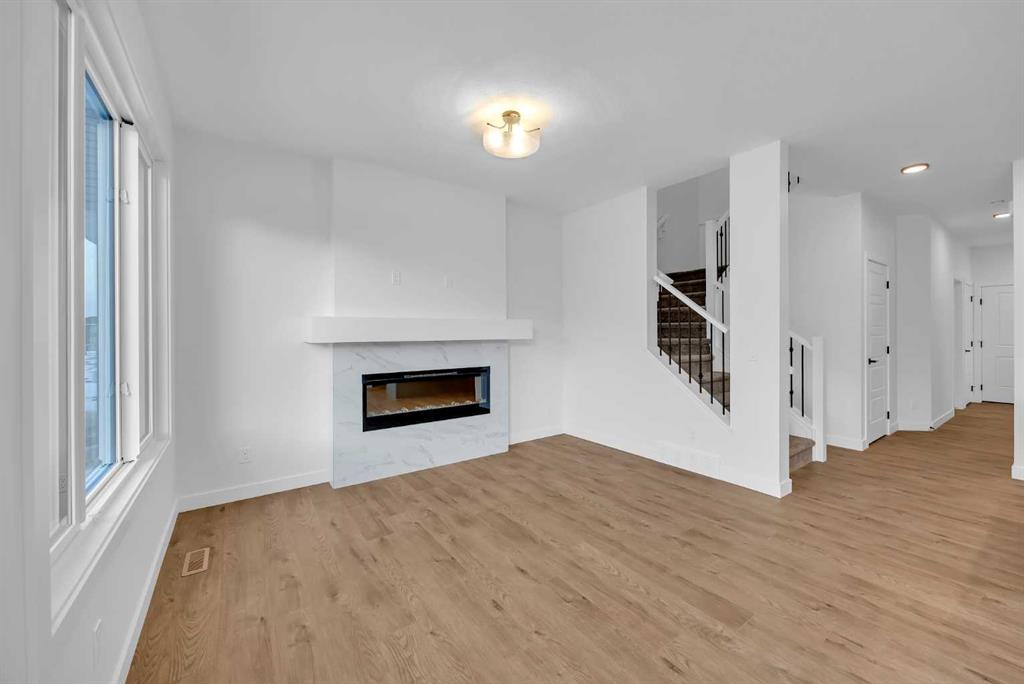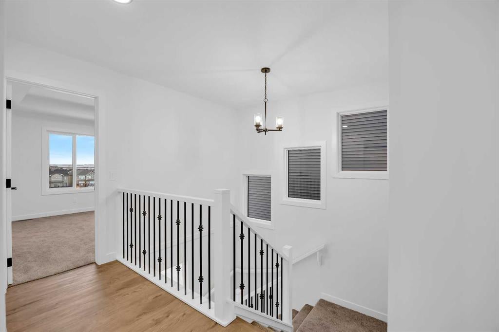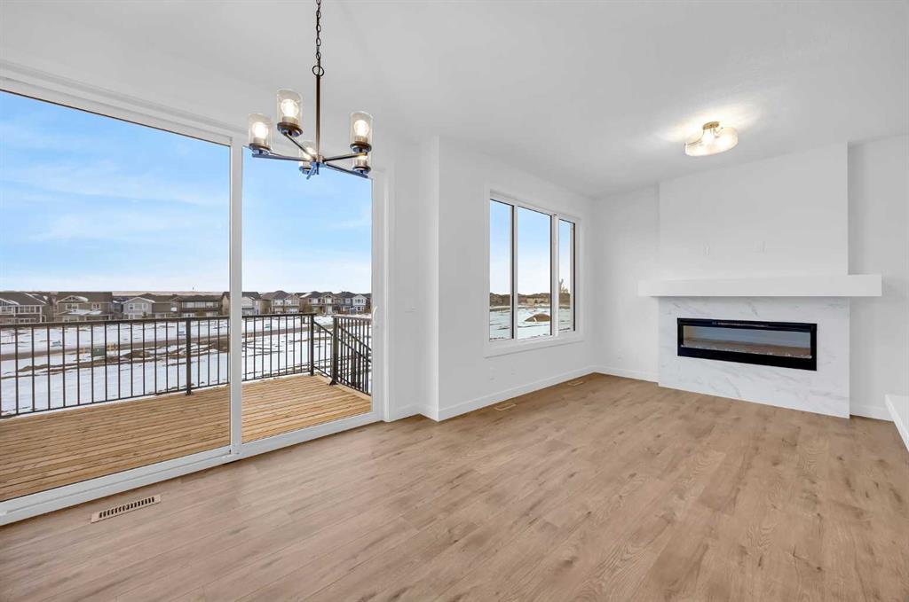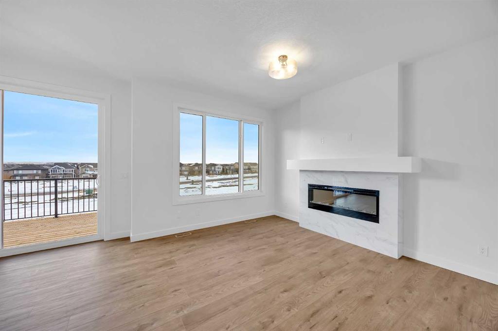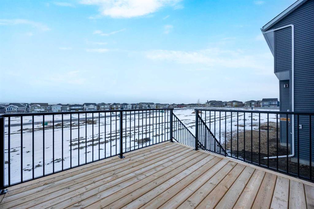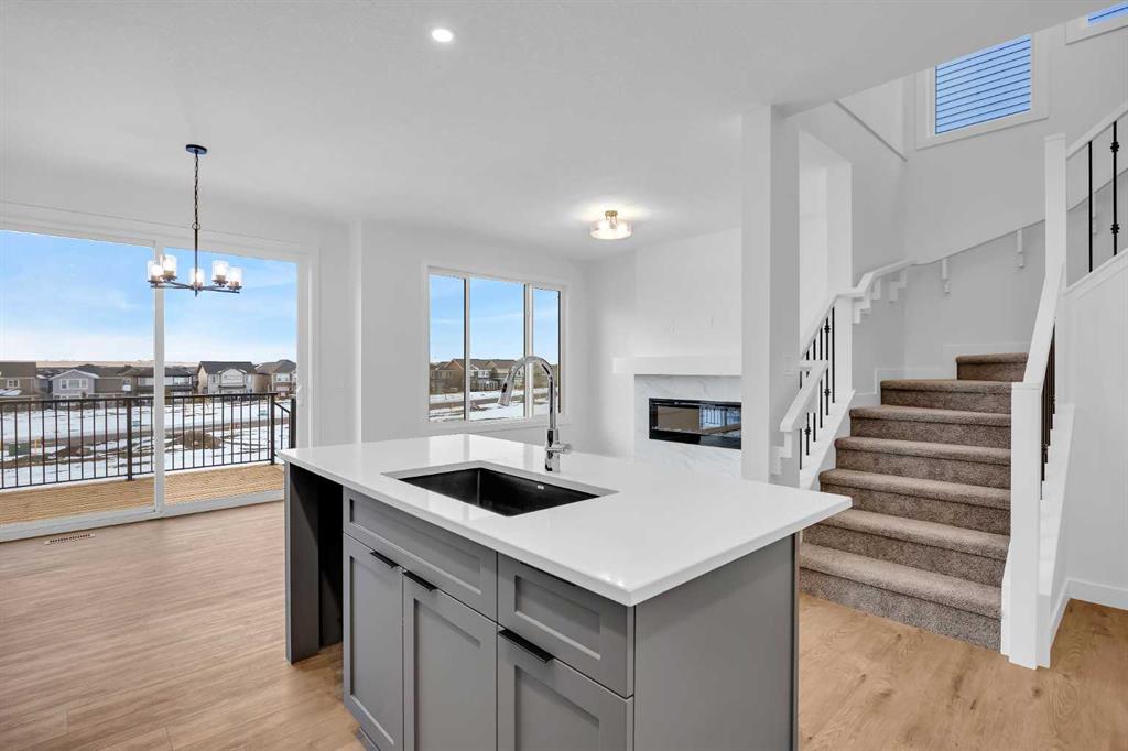 Welcome to The Abbott, where timeless design meets everyday functionality in the heart of the vibrant Airdrie community. Built by a trusted builder with over 70 years of experience, this thoughtfully designed home showcases designer curated interior selections, creating a warm and personalized living space. Energy efficient construction, smart home features, and moving concierge services add exceptional value and convenience. The chef inspired kitchen features stainless steel appliances, a gas range, chimney style hood fan, and a walk in pantry. A main floor bedroom and full bathroom provide flexibility for guests or multi generational living, while the separate side entrance enhances functionality. Unwind on your private rear wood deck, gather by the electric fireplace, or enjoy the spacious vaulted bonus room with LVP flooring perfect for relaxing or entertaining. The primary retreat offers a luxurious 5-piece ensuite with dual sinks, a bank of drawers, a soaker tub, and a separate glass shower. Elevated finishes such as paint grade railings with iron spindles and a tray ceiling in the primary bedroom reflect the quality craftsmanship throughout. Located in one of Alberta’s most desirable and fast growing communities, Airdrie is known for its strong sense of community, family friendly neighbourhoods, and abundance of parks, pathways, and recreational amenities. Residents enjoy excellent schools, local shops, cafes, and year round community events. With quick access to Calgary International Airport, CrossIron Mills Shopping Centre, and major commuter routes, Airdrie offers the perfect balance of small-town charm and big city convenience. This is more than a home it’s a lifestyle.