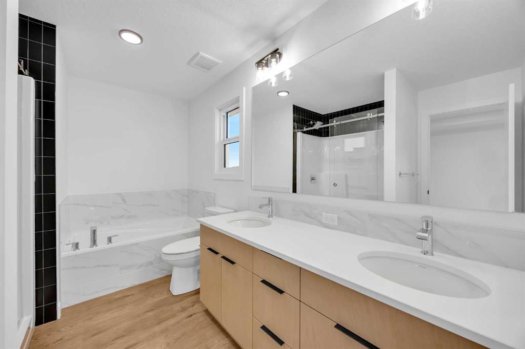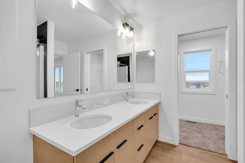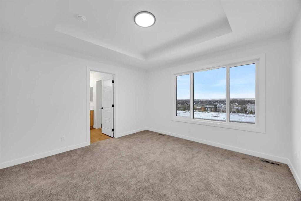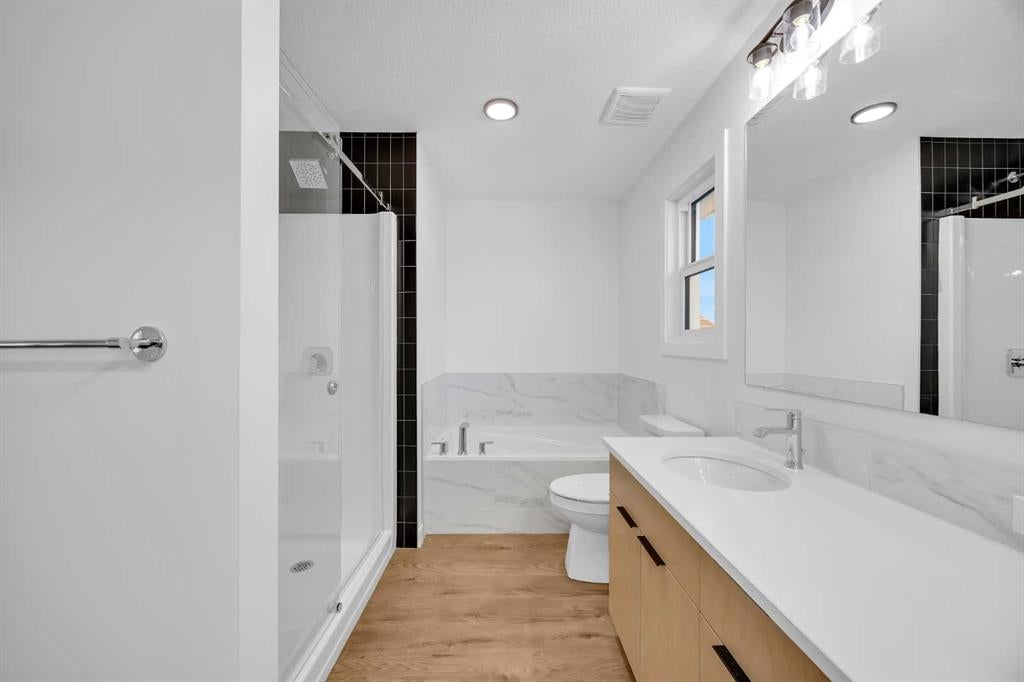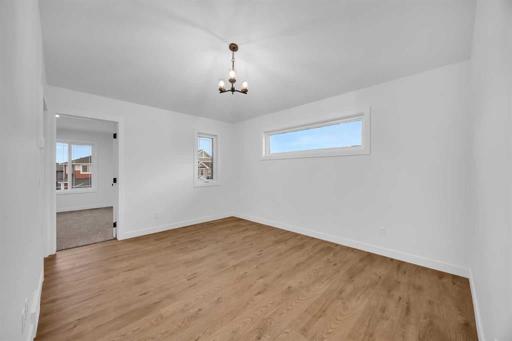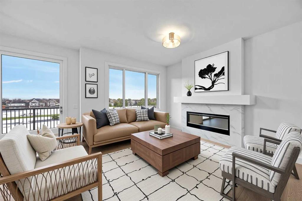 Welcome to The Abbott, where timeless design meets everyday functionality in the heart of the vibrant Airdrie community. Built by a trusted builder with over 70 years of experience, this thoughtfully designed home showcases designer curated interior selections, creating a warm and personalized living space. Energy efficient construction, smart home features, and moving concierge services add exceptional value and convenience. The chef inspired kitchen features stainless steel appliances, a gas range, chimney style hood fan, and a walk in pantry. A main floor bedroom and full bathroom provide flexibility for guests or multi generational living, while the separate side entrance enhances functionality. Unwind on your private rear wood deck, gather by the electric fireplace, or enjoy the spacious vaulted bonus room with LVP flooring perfect for relaxing or entertaining. The primary retreat offers a luxurious 5-piece ensuite with dual sinks, a bank of drawers, a soaker tub, and a separate glass shower. Elevated finishes such as paint grade railings with iron spindles and a tray ceiling in the primary bedroom reflect the quality craftsmanship throughout. Located in one of Alberta’s most desirable and fast growing communities, Airdrie is known for its strong sense of community, family friendly neighbourhoods, and abundance of parks, pathways, and recreational amenities. Residents enjoy excellent schools, local shops, cafes, and year round community events. With quick access to Calgary International Airport, CrossIron Mills Shopping Centre, and major commuter routes, Airdrie offers the perfect balance of small-town charm and big city convenience. This is more than a home it’s a lifestyle.