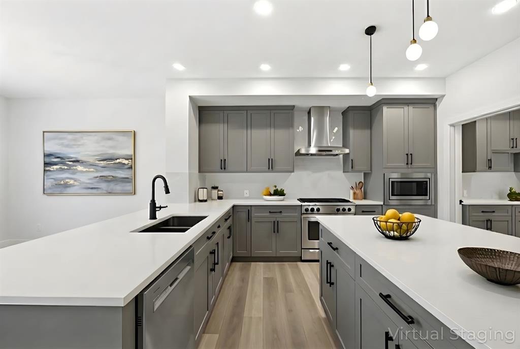 Discover the Pierce 2 - a modern, thoughtfully designed home by a trusted builder with over 70 years of experience. This energy-efficient home features designer-curated finishes and smart home technology. A beautifully crafted home with attached garages, thoughtfully designed to maintain the standard 8’ separation between living spaces for enhanced privacy and a true detached feel. The layout offers a walkout basement, a main-floor flex room with French doors, and a full bath with a walk-in shower. The sleek kitchen includes stainless steel appliances, a gas range, and a separate spice kitchen with pantry shelving. The great room features an electric fireplace, and the rear deck comes with a BBQ gas line. Upstairs are two spacious primary bedrooms, each with walk-in showers, including a luxurious five-piece main ensuite. Finished with LVP flooring, tile in bathrooms, and quartz countertops throughout. Built Green certified with triple-pane windows, high-efficiency furnace, solar-ready rough-in, EV charger rough-in, and a full smart home package. The layout offers a walkout basement, a main-floor flex room with French doors, and a full bath with a walk-in shower. Only the garages are attached, providing the privacy and feel of a detached home. The sleek kitchen includes stainless steel appliances, a gas range, and a separate spice kitchen with pantry shelving. The great room features an electric fireplace, and the rear deck comes with a BBQ gas line. Upstairs are two spacious primary bedrooms, each with walk-in showers, including a luxurious five-piece main ensuite. Finished with LVP flooring, tile in bathrooms, and quartz countertops throughout. Built Green certified with triple-pane windows, high-efficiency furnace, solar-ready rough-in, EV charger rough-in, and a full smart home package.
