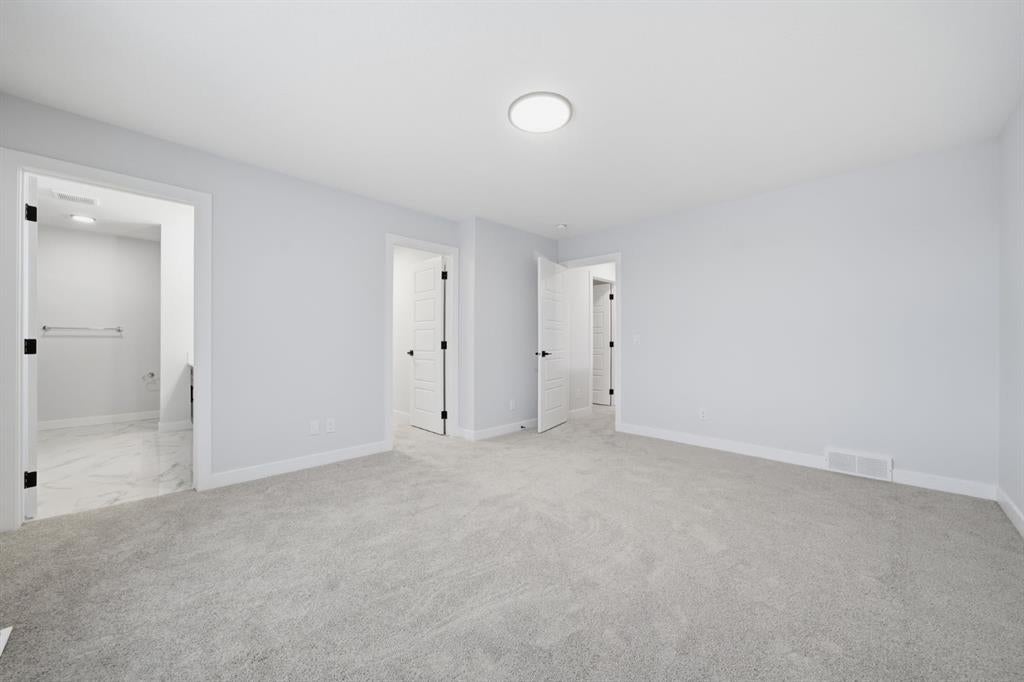 Discover the Pierce 2 - a modern, thoughtfully designed home by a trusted builder with over 70 years of experience. This energy-efficient home features designer-curated finishes, smart home technology, and moving concierge services included. The layout offers a walkout basement, a main-floor flex room with French doors, and a full bath with a walk-in shower. Only the garages are attached, providing the privacy and feel of a detached home. The sleek kitchen includes stainless steel appliances, a gas range, and a separate spice kitchen with pantry shelving. The great room features an electric fireplace, and the rear deck comes with a BBQ gas line. Upstairs are two spacious primary bedrooms, each with walk-in showers, including a luxurious five-piece main ensuite. Finished with LVP flooring, tile in bathrooms, and quartz countertops throughout. Built Green certified with triple-pane windows, high-efficiency furnace, solar-ready rough-in, EV charger rough-in, and a full smart home package.