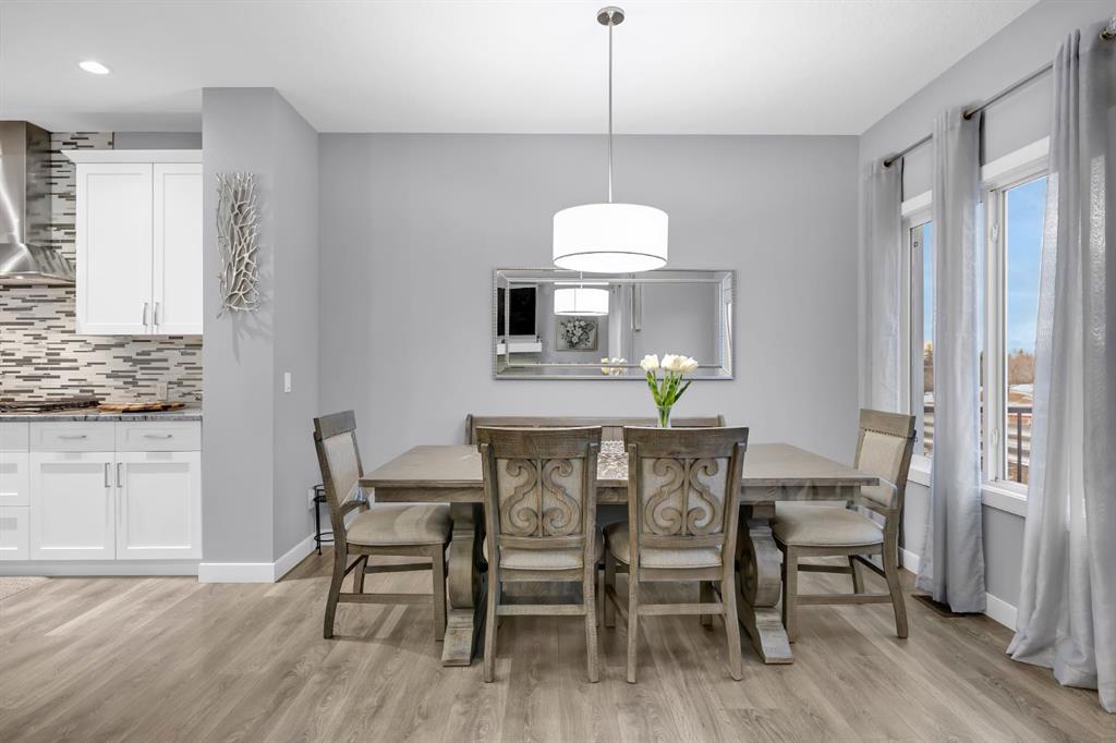 Welcome to 161 Ravenstern Crescent, a stunning 2-storey walkout home located in the highly desirable community of Ravenswood in Airdrie. Offering 2,449 sq. ft. of thoughtfully designed living space, this home features 4 bedrooms, 2.5 bathrooms, and a layout perfect for growing families. The main floor is both functional and stylish, showcasing durable vinyl plank flooring throughout. A versatile front office/den provides the ideal space for a home office, library, or study. The open-concept design flows seamlessly into the heart of the home — the chef’s kitchen, complete with stainless steel appliances, quartz countertops, a gas cooktop, built-in oven and microwave, and a large central island perfect for entertaining. A convenient walkthrough pantry connects directly to the kitchen, and a 2-piece bathroom completes the main level. The inviting living room is anchored by a cozy gas fireplace, creating the perfect gathering space. Upstairs, you’ll find a spacious bonus room, ideal for family movie nights or a play area. The upper level also includes three generously sized bedrooms, a shared 5-piece bathroom, and a convenient laundry room. The primary retreat is impressively sized and features a large walk-in closet and a luxurious 5-piece ensuite, offering a private space to unwind. The walkout basement is undeveloped and ready for your personal touch — whether you envision additional living space, a home gym, or a guest suite. Ideally located close to schools, shopping, parks, and offering easy access to major highways, this home combines comfort, convenience, and future potential. Book your private showing today and experience everything this exceptional home has to offer!