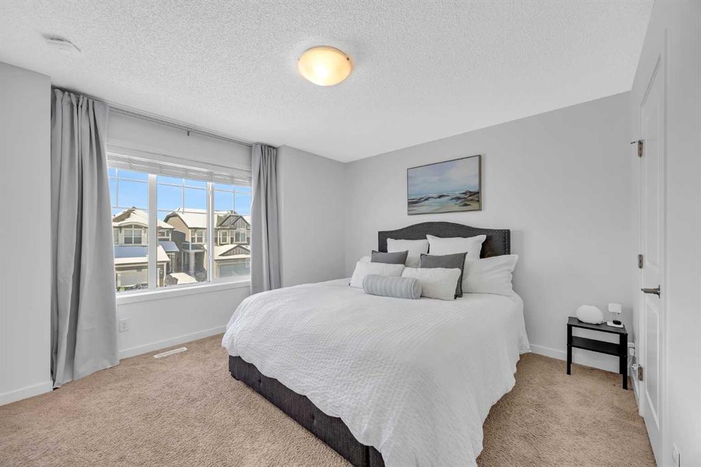 Welcome to this beautifully maintained 2-storey home in the highly sought-after lake community of Auburn Bay. Offering 3 bedrooms, 2.5 bathrooms, a single attached garage, and centralized air conditioning for year-round comfort, this home features a bright and functional layout perfect for families. Enjoy exclusive year-round lake access and the lifestyle that makes Auburn Bay one of Calgary’s most desirable communities. The main floor welcomes you with 9-foot ceilings, rich laminate flooring, and a bright open-concept design that feels both spacious and inviting. At the heart of the home is a beautifully appointed kitchen featuring granite countertops, stainless steel appliances, abundant cabinetry, and a large central island with a double sink and seating, perfect for casual mornings or evening gatherings. The seamless flow into the dining and living areas creates a refined yet comfortable space for entertaining, while the rear door opens directly to the backyard for effortless indoor-outdoor living. Step outside to one of this home’s most impressive features, a generously sized backyard offering more space than many comparable properties. Fully fenced and complete with a large patio, it’s an ideal setting for summer barbecues, family celebrations, or simply relaxing in your own private retreat. Upstairs you’ll find three well-appointed bedrooms, including a primary suite with a walk-in closet and a private 4-piece ensuite designed for relaxation. Two additional bedrooms and a full bathroom provide comfortable space for family or guests. The undeveloped basement with a bathroom rough-in offers a blank canvas ready to be transformed into additional living space tailored to your needs. Perfectly located near parks, schools, pathways, shopping, and Auburn Bay’s private lake where residents enjoy swimming, skating, and year-round recreation, this home offers not just a place to live, but a lifestyle to truly enjoy.